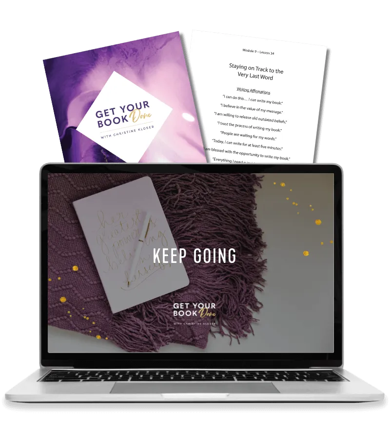 Get Your Book Done made it possible for me to be the woman I always hoped I could be. Christine’s powerful process – made possible by her razor sharp intuition – guided me every step of the way. Not only did I get my book done but I experienced more life-changing breakthroughs than I can count. I used to be a frustrated and doubtful aspiring author, but now my book is published and I’m pinching myself that I finally did it.