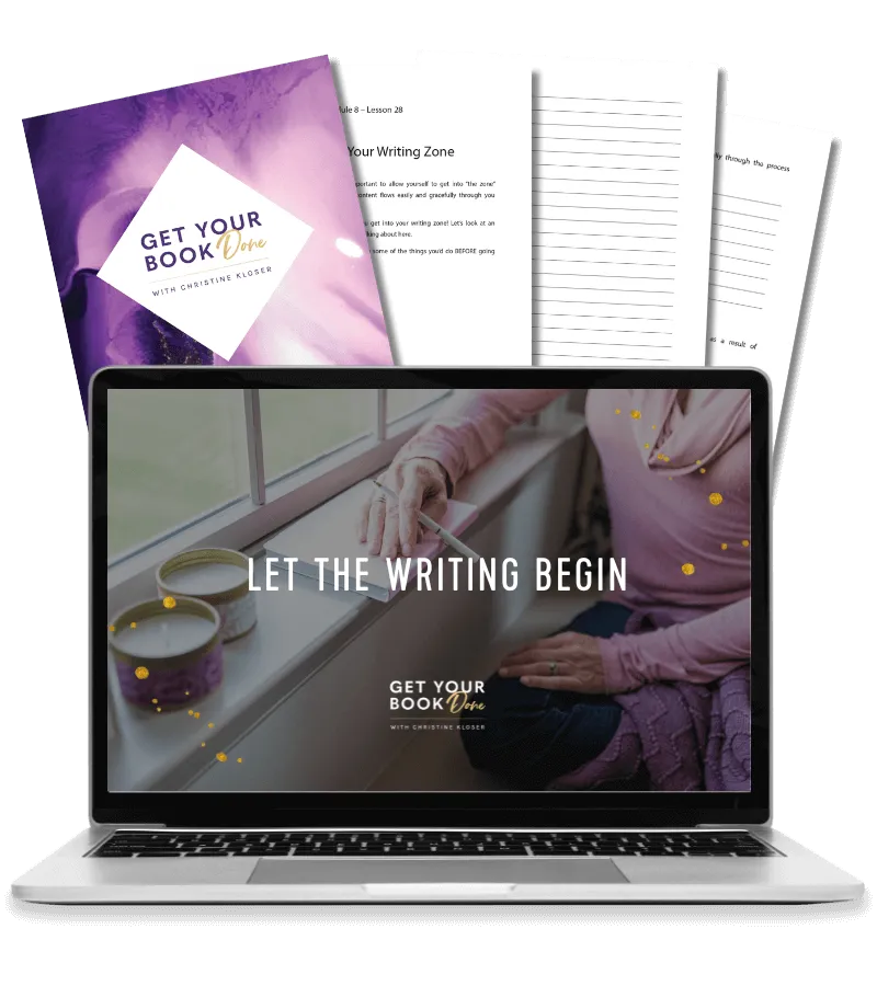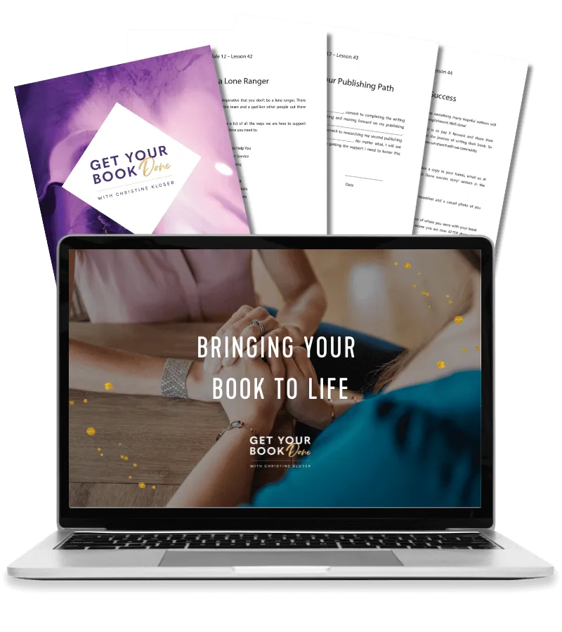 It begins with you joining the Get Your Book Done® program. There, you’ll be guided through my proven book-writing system, at a pace that fits your life.